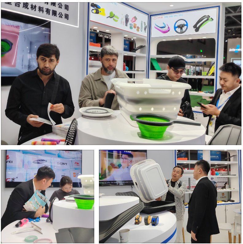 中塑企业在展位上通过实物展示与互动体验,生动呈现了TPE材料在汽车配件、家居用品、儿童玩具、运动器材、医疗器械等领域的广泛应用。例如: